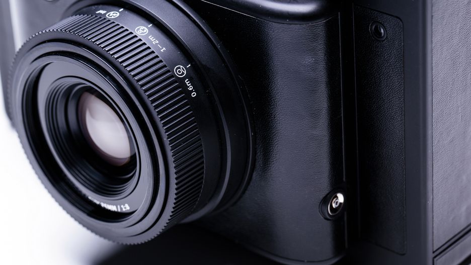 Na przodzie aparatu znajdziemy szerokokątny obiektyw, którego ogniskowa, w przeliczeniu dla pełnej klatki, ma 35 mm (natywne 90 mm) o przysłonie f/8. Dużym plusem jest funkcja wyłącznie manualnego ostrzenia w zakresie od 0,6 m do nieskończoności, z zaznaczonymi konkretnymi odległościami. Obiektyw wydaje się być wykonany całkowicie z plastiku, łącznie z optyką. Nie jest to dziwny zabieg, biorąc pod uwagę ideę lomografii. Daje on częściowe winietowanie oraz specyficzną aberrację chromatyczną, co jest celowym zabiegiem, zastosowanym przez firmę, a nie wadą produkcyjną.