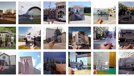 Looking into the past to świetna grupa na Flickr, gdzie wrzucane są zdjęcia w różny sposób zmiksowane - te z przeszłości z tymi aktualnymi. Jeśli pooglądacie sobie całą grupę, to zobaczycie, że metody są bardzo różne. Od prostego pokazania w kadrze starego zdjęcia, z aktualnym tłem, poprzez komputerowe montaże dwóch zdjęć z różnych epok, aż po najbardziej atrakcyjne, zrobione w "manualny" sposób, gdzie stare kadry płynnie łączą się z teraźniejszością - bez użycia Photoshopa. I właśnie te wyglądają najbardziej atrakcyjnie - pokazuje to kolekcja zdjęć użytkownika edrabbit. Polecam!