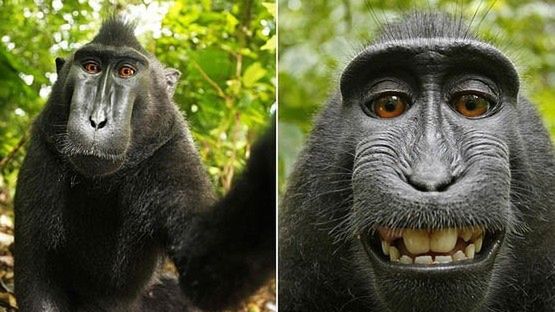 David J Slater spokojnie fotografował dziką przyrodę, gdy niespodziewanie doszło do aktu przestępstwa. Niepilnowany przez niego aparat na statywie został skradziony ... przez małpę. Małpę-złodzieja łatwo było namierzyć gdyż ta zrobiła sobie serię autoportretów.