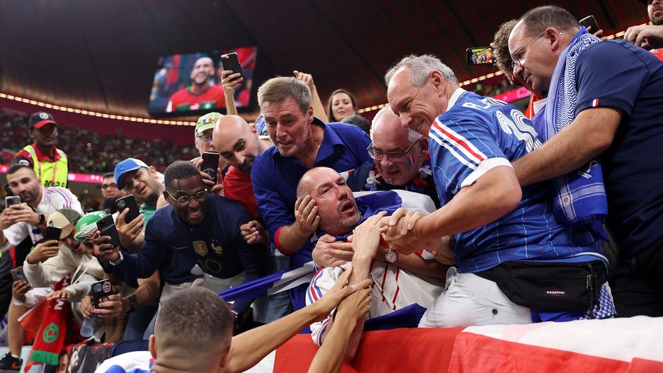 Mbappe ma szanse na zdobycie tytułu króla strzelców podczas mundialu, lecz nie wszystkie jego strzały są tak celne, jakby chciał. Przykładem jest sytuacja z rozgrzewki przed meczem Francja – Maroko. Po oddaniu strzału Mbappe od razu pobiegł w kierunku trybun, by sprawdzić, czy kibicowi nic nie jest.