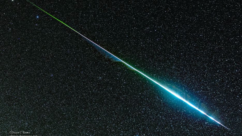 Kiedy fotografował nocne niebo podczas deszczu meteorytów, nic nie zapowiadało tego, że uda mu się zrobić tak spektakularne zdjęcie. "Spadające gwiazdy" mniejsze, lub większe raczej już nikogo nie zaskakują, choć są piękne. To, co zobaczył Dean, było jednak wyjątkowe. Duży meteor przeciął niebo, rozbłyskując w atmosferze ziemi na różne kolory i zostawiając za sobą dym.