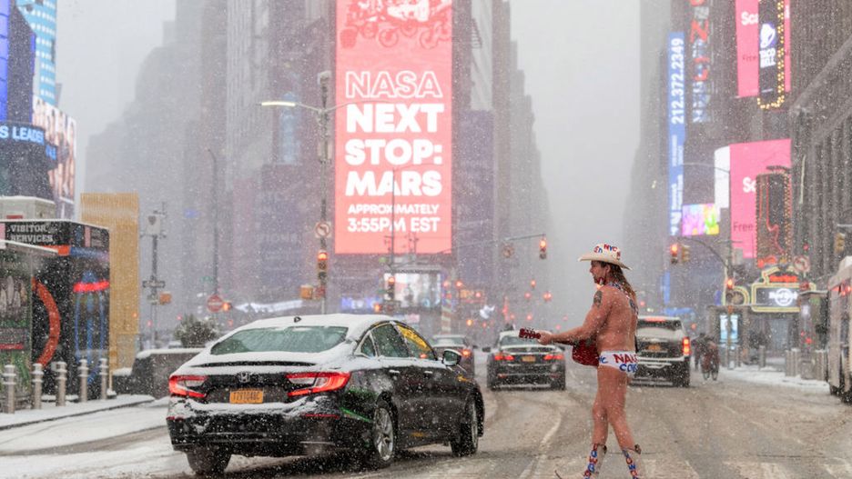 Łazik Perseverance wylądował na Marsie 18 lutego 2021. O wydarzeniu można było usłyszeć i przeczytać wszędzie. Również w Nowym Jorku. A dokładniej na Times Square. Gdzie przez zaśnieżoną ulicę przechodził niemal nagi kowboj.