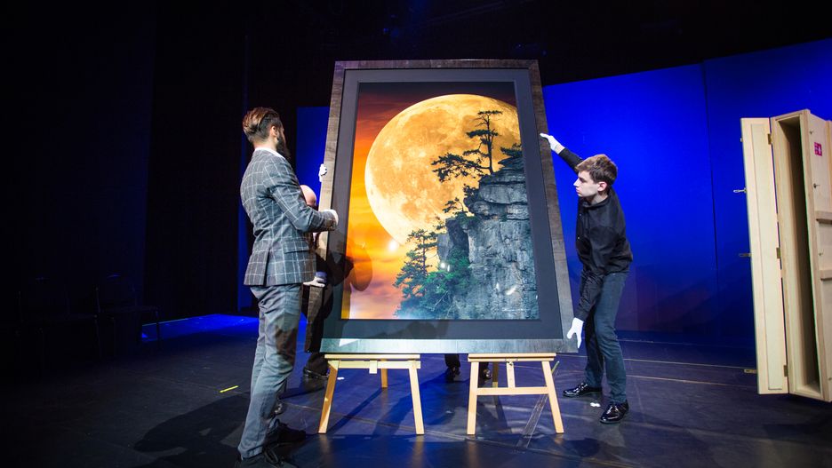 Zdjęcie, właściwie fotomontaż, Petera Lika trafiło na scenę teatru pod specjalnym nadzorem – musiało zostać przetransportowane zabezpieczonym transportem lotniczym. Zanim Filip Majchrowski mógł zobaczyć dzieło, które zakupił, trzeba było je delikatnie rozpakować. Drewniana skrzynia z plombami została odblokowana szlifierką kątową i przecinakami.
