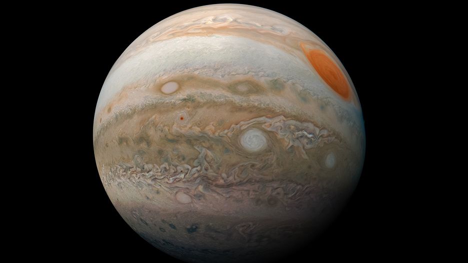 Jowisz jest ogromną planetą gazową, która pokrywa kilka warstw chmur, układających się w charakterystyczne pasy biegnące poziomo. Od 2016 roku na jego orbicie znajduje się sonda kosmiczna Juno, która regularnie dostarcza naukowcom zdjęcia i informacje o tym olbrzymie.