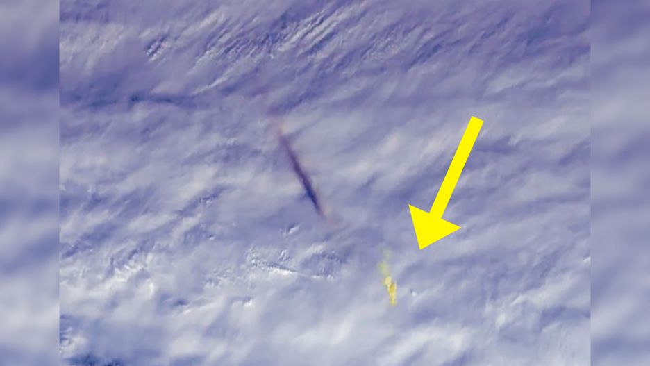 Tutaj możecie zobaczyć pomarańczowy ślad, który zostawił po sobie meteoroid wchodząc w atmosferę.