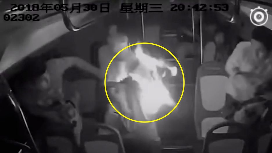 Na nagraniu zobaczymy scenę z autobusu, gdzie dwóch przyjaciół siedzi i rozmawia. Nagle widać wybuch i jeden z mężczyzn staje w płomieniach i wyskakuje z autobusu po tym, jak kierowca go zatrzymał i otworzył drzwi. Widać, że chłopak wyrzuca powerbank, który wciąż się palił i dymił. Na szczęście nikomu nie stała się krzywda, aczkolwiek niewiele brakowało.