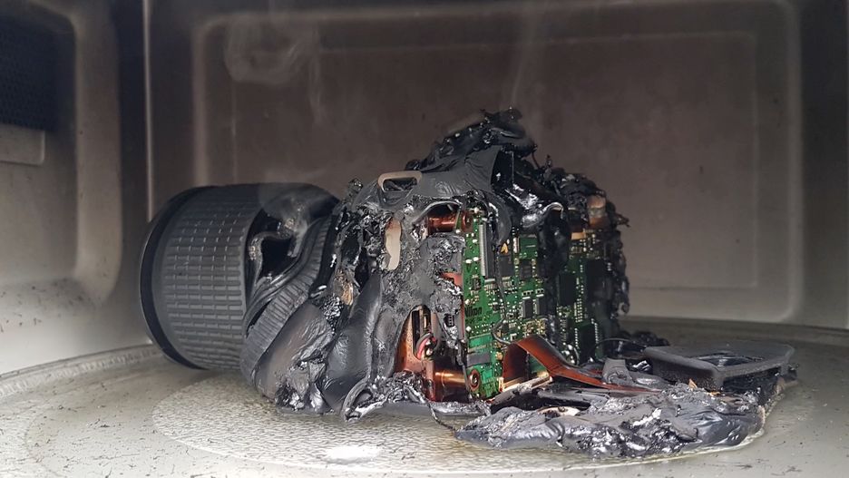 Zobacz, co się stanie, kiedy włożysz aparat do mikrofalówki