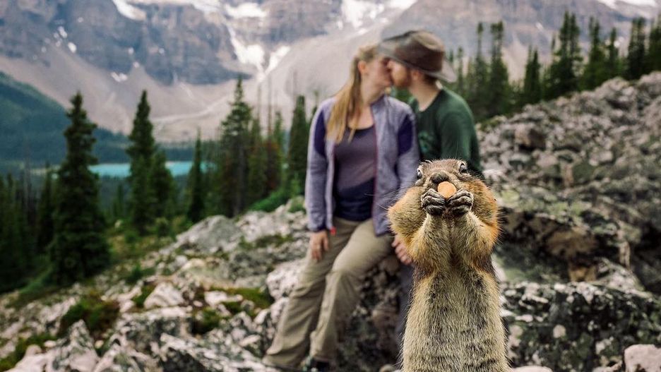 Miła parka – Kelin Flanagan oraz Spencer Taubner, zdecydowali się przejechać do Canadian Rockies, pasma Gór Skalistych, na sesję narzeczeńską z B.D.F.K Photography. Wszystko byłoby piękne, sielankowe, gdyby zdjęcia nie „zepsuła”... słodka wiewiórka z orzeszkiem w łapkach!