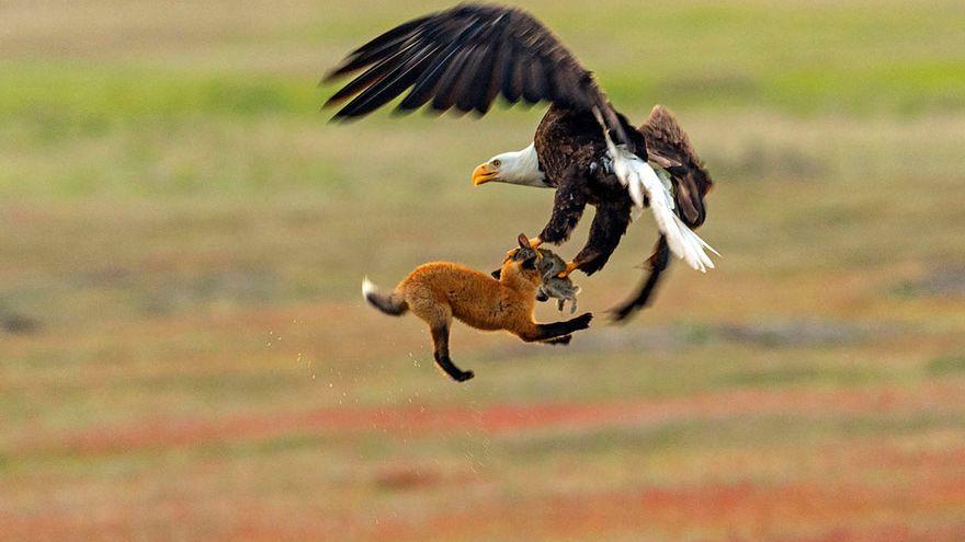Amerykański fotograf dzikiej przyrody, Kevin Ebi był świadkiem dramatycznej walki młodego lisa z orłem bielikiem. Wykonał wspaniałą serię zdjęć, dokumentując to niesamowite zdarzenie.