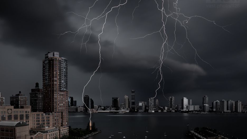 Zdjęcia błyskawic natomiast zazwyczaj są wykonywane na jednej, dłuższej ekspozycji, na której rejestruje się kolejne błyski. Więc teoretycznie połączenie tych dwóch efektów wydaje się niemożliwe. Jednak zdjęcie Dana Piecha “The Hand of Zeus” udowadnia, że dzięki samozaparciu i ciężkiej pracy można stworzyć coś nowego. To gigapanorama Nowego Jorku podczas burzy, o rozdzielczości 5449 megapikseli.