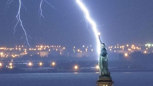Niesamowite zdjęcie uderzenia pioruna w Statuę Wolności