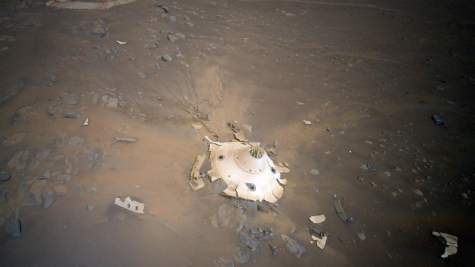 Helikopter marsjański Ingenuity namierzył i sfotografował szczątki sprzętu, który pomógł łazikowi Perseverance wylądować na powierzchni Marsa. Przyjrzenie się niektórym elementom, które umożliwiły mu bezpieczne dotarcie na powierzchnię Czerwonej Planety, może dostarczyć cennych wskazówek dla przyszłych misji.