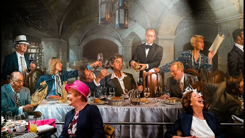 Na pierwszy rzut oka trudno uwierzyć, że to nie fotomontaż. Idealna kompozycja, ekspresja i ustawienie gości wygląda aż nazbyt idealnie. Kiedy przyjrzymy się bliżej, dostrzegamy jednak, że tylko dwie postaci na tym zdjęciu są gośćmi wesela. Pozostali to bohaterowie obrazu.