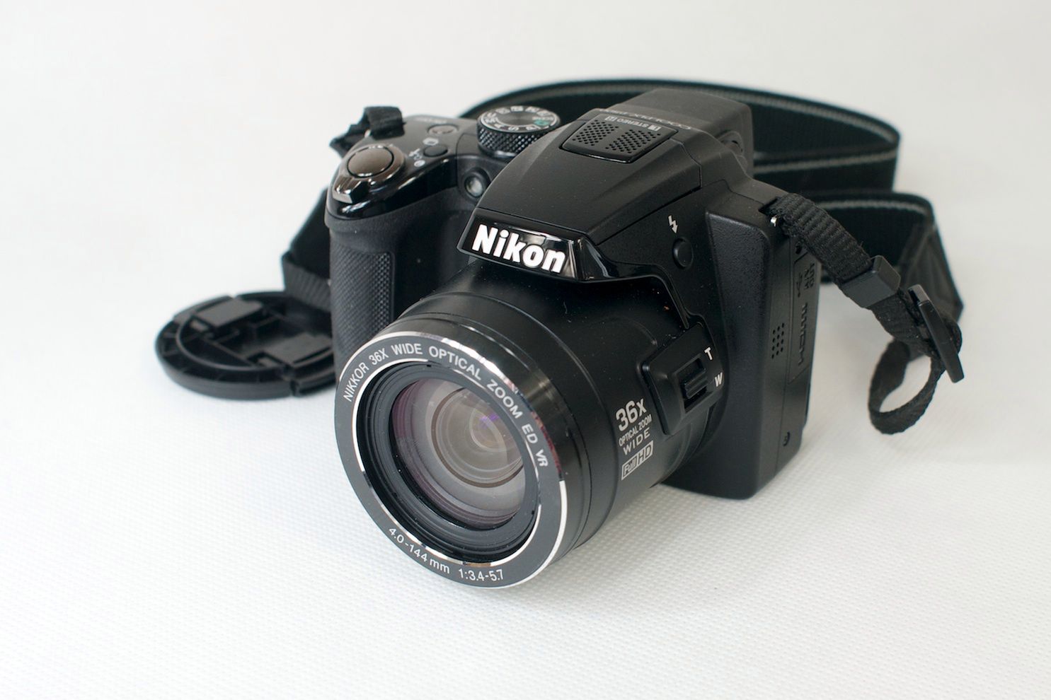 W porównaniu z modelem Coolpix P100 (Nikkor ED VR, 26-678 mm, f/2,8-5,6) nowy kompakt ma obiektyw o większym zakresie ogniskowych, ale niestety o niższej światłosile.
