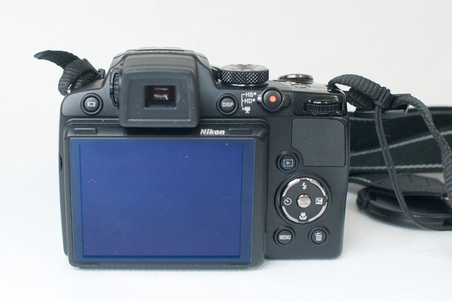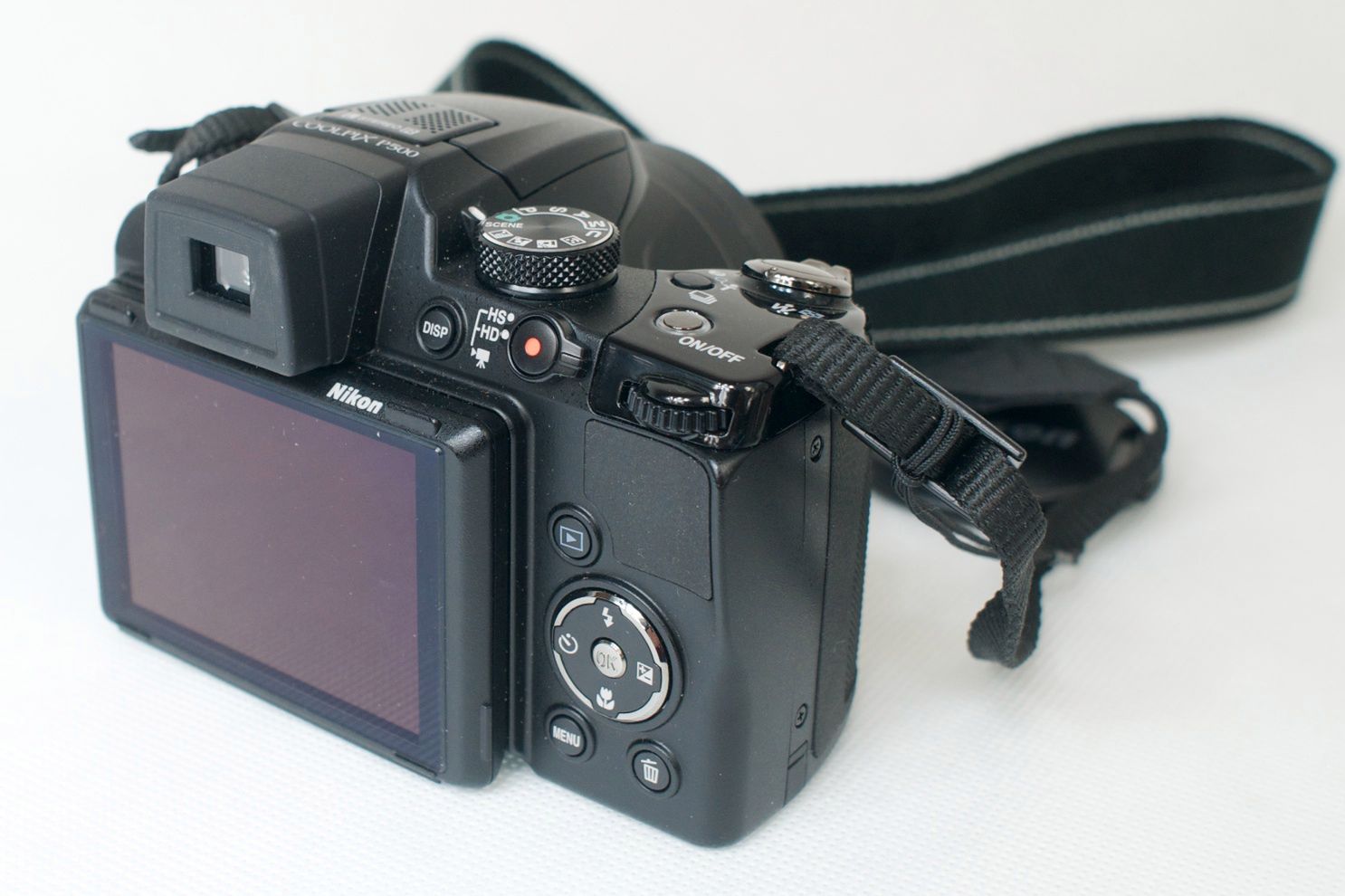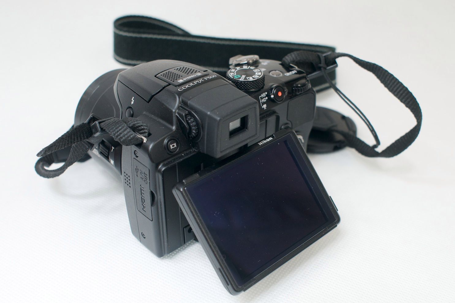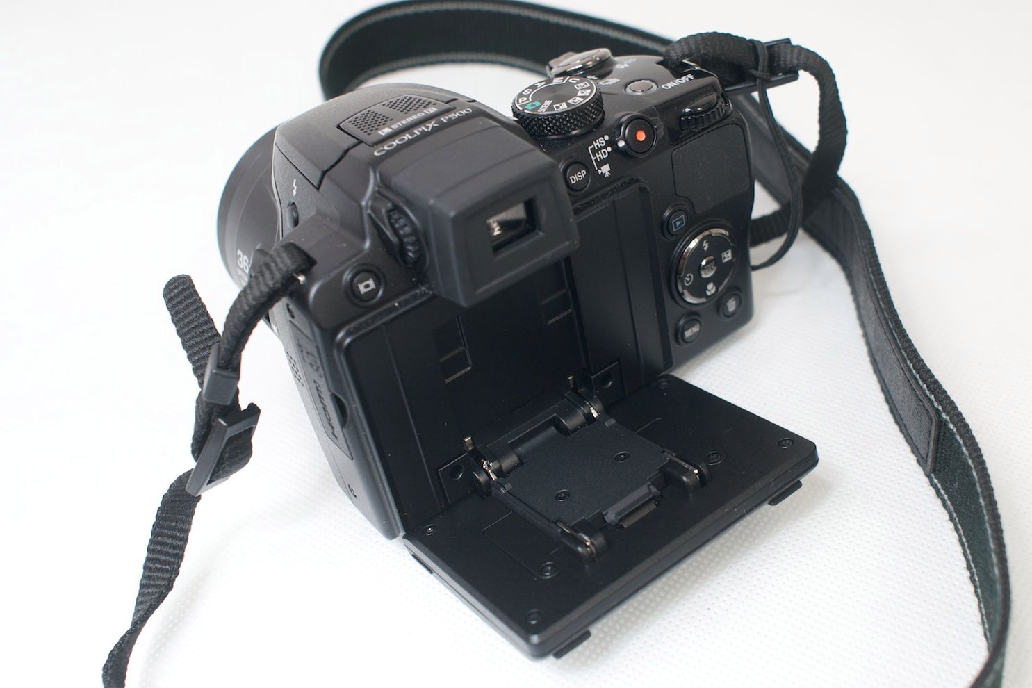 W Nikonie Coolpix P500 znajduje się nowy, odchylany, 3-calowy wyświetlacz LCD o rozdzielczości 921 tys. punktów. Ekran pokryto ochronnym panelem akrylowym z powłoką przeciwodblaskową po obu stronach i powłoką HD.