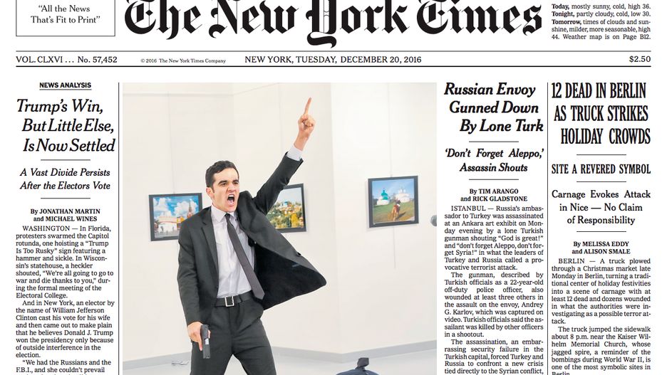 Na miejscu zdarzenia był Burhan Ozbilici, wysłannik agencji Associated Press, który miał udokumentować przemówienie ambasadora Rosji. Nikt nie spodziewał się takiego obrotu spraw. W momencie, kiedy doszło do wymierzenia przez Altintasa broni w kierunku Karlova i oddania strzałów, Ozbilici zachował zimną krew, chwycił aparat i zarejestrował całe wydarzenie. Większość ludzi w takiej sytuacji zareagowałaby inaczej, ale nie on. Prawdziwy fotoreporter jest w stanie ryzykować swoje zdrowie i życie dla wykonania takiego materiału. Podejrzewam, że Burhan wiedział, że doświadcza historycznej chwili i te zdjęcia będą bardzo ważne. Tak naprawdę to jedyne, co mógł zrobić w tamtej sytuacji.