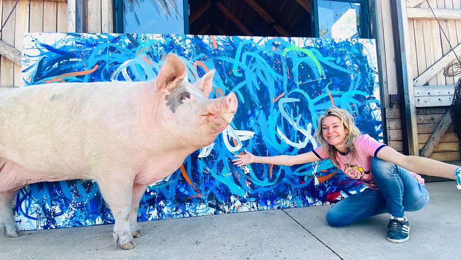 Obraz namalowany przez świnię sprzedany za 110 tys. zł! Tak prezentuje się na zdjęciach
