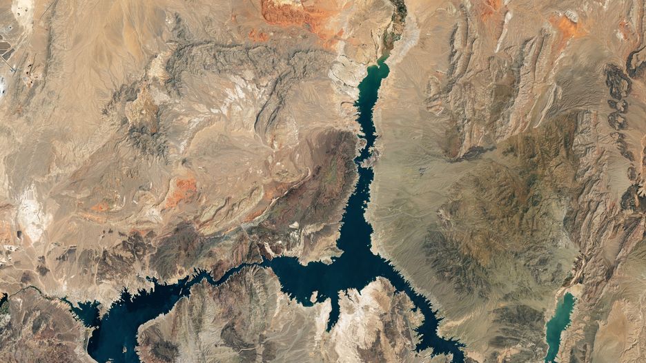 Narodowa Agencja Aeronautyki i Przestrzeni Kosmicznej wykonała zdjęcia 6 lipca 2000 roku i 3 lipca 2022 roku przez satelity Landsat 7 i Landsat 8. Agencja kosmiczna zamieściła również zdjęcie z 2021 roku, na którym można dostrzec zmineralizowane obszary brzegu jeziora, które wcześniej znajdowały się pod wodą, gdy zbiornik był wypełniony bliżej jego pojemności. Zjawisko to jest często określane jako "pierścień wanny". W ciągu zaledwie dwóch dekad widać, jak bogate jezioro zamienia się w suche szczeliny, zmniejszając największy amerykański zbiornik wodny do zaledwie 27 proc. jego pojemności.