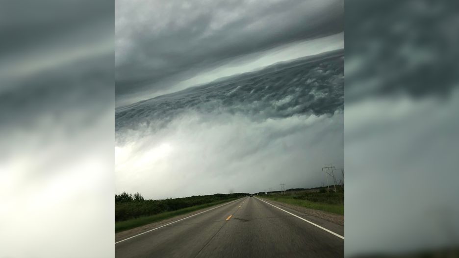 Na zdjęciu zobaczymy pustą drogę oraz bardzo niepokojący widok. Jeśli on miał uspokoić córkę, to na pewno tego nie zrobił. To, co dzieje się nad horyzontem wygląda jak ogromna fala pędząca w stronę kierującej pojazdem. Tymczasem są to specyficznie układające się chmury.