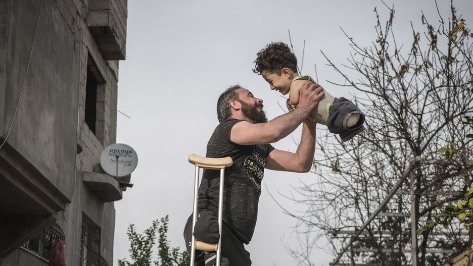 To wyjątkowo emocjonalne zdjęcie zostało zrobione w dzielnicy Reyhanli, w tureckiej prowincji Hatay, na granicy z Syrią. Ojciec, który stracił jedną nogę, trzyma na rękach swojego syna, który urodził się bez dolnych i górnych kończyn z powodu wrodzonego zaburzenia spowodowanego lekami przyjmowanymi przez jego matkę. Kobieta leczyła się farmakologicznie po zachorowaniu przez gaz paraliżujący rozpylony podczas wojny w Syrii.