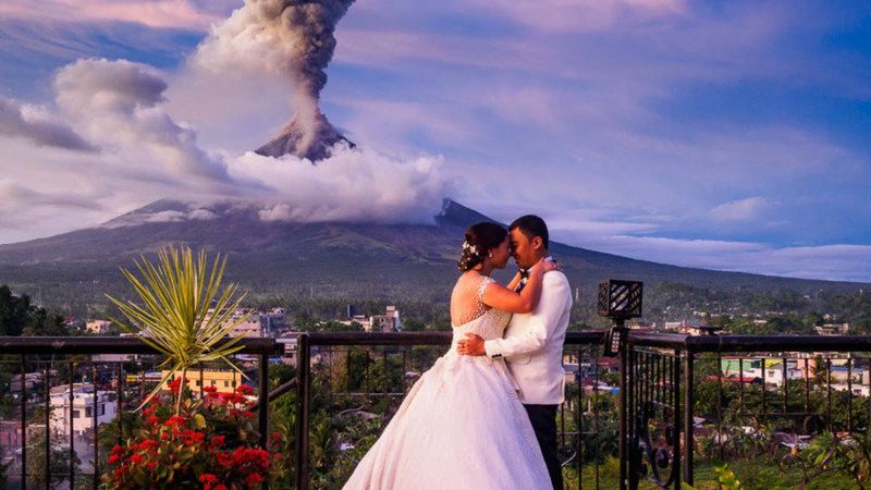 Ślub to dla niektórych dosłownie wybuchowy dzień. Ogromny wybuch emocji, połączony z wybuchem wulkanu to dopiero coś! Jack Kurtz, fotoreporter z Filipin, zrobił zdjęcie nowożeńców na tle Mayon – jednego z aktywnych wulkanów. To po prostu coś pięknego!