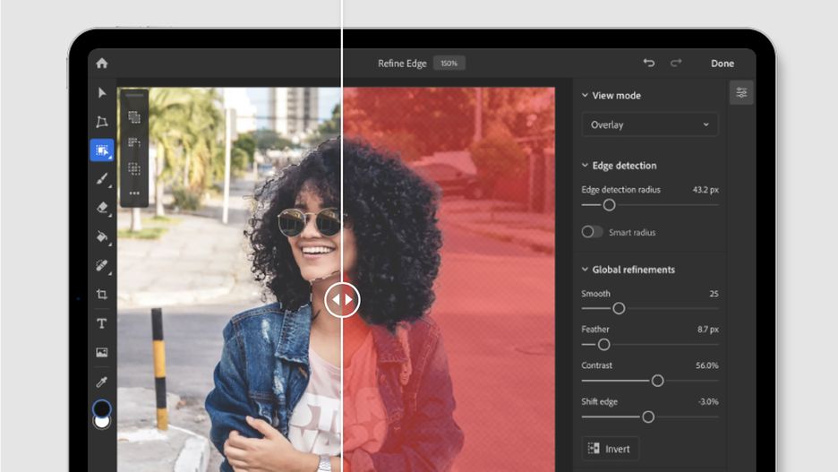 Narzędzie Refine Edge Brush jest bardzo popularne wśród wszystkich, którzy robią kolaże. Ułatwia ono dokładne szparowanie takich elementów zdjęć, jak włosy lub inne skomplikowane kształty. Od teraz będzie można go używać na iPadach.