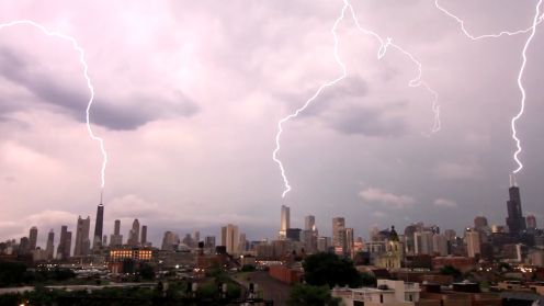 Oto co znaczy mieć naprawdę fajny widok z okna! Craig Shimala właśnie takim może się poszczycić, z jego balkonu doskonale widać panoramę wieżowców Chicago. Poza tym, że miasto widziane z tego punktu na pewno świetnie wygląda o każdej porze roku, fenomenalne wrażenie robi podczas intensywnej burzy. Szczególnie, jeśli w jednym momencie aż trzy błyskawice uderzają w najwyższe budynki w mieście. I jeśli akurat uwieczniło się to na filmie Canonem 7D!