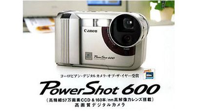 Pierwszym był PowerShot 600 który w porównaniu z dzisiejszymi mają mało do zaoferowania, ale za to pokazują postęp w technologii. PowerShot 600 miał matrycę o rozdzielczości 0,57 megapikseli, czułość tylko jedną do wyboru ? ISO 100. Zapisywał obrazy o rozdzielczościach maksymalnie 832x608 pikseli ? próbkę jego możliwości zobaczycie w Wirtualnym Muzeum Canona. Jego obiektyw miał ogniskową 7 mm (jasność f/2.5), co daje 50 mm w przeliczeniu na ekwiwalent dla małego obrazka.