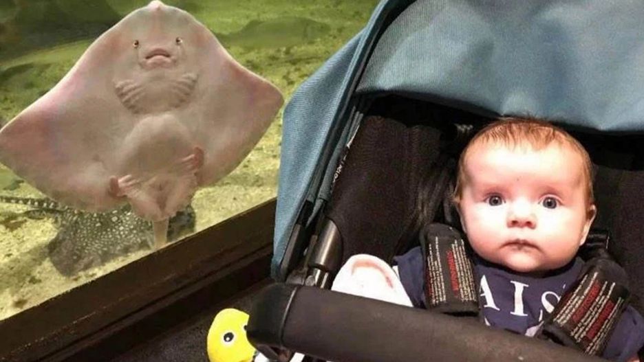 Kiedy Brytyjka zauważyła, że zwierzę zdaje się zainteresowane jej 6-miesięczną córką, natychmiast wyciągnęła telefon. Dopiero po chwili spostrzegła, że ryba i jej dziecko mają dość podobne, niezbyt szczęśliwe miny. "Wyjęłam telefon, a kiedy zobaczyłam, że oboje mają ten sam nędzny wyraz twarzy, wybuchłam śmiechem i zrobiłam zdjęcie" – relacjonuje autorka.
