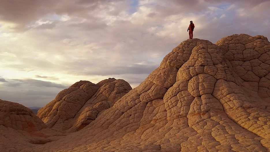 Samotny astronauta, który wydaje się podróżować po powierzchni innych planet w rzeczywistości przemierza ziemię. Według Studera ziemie publiczne powinny być chronione, aby zachować je dla przyszłych pokoleń.