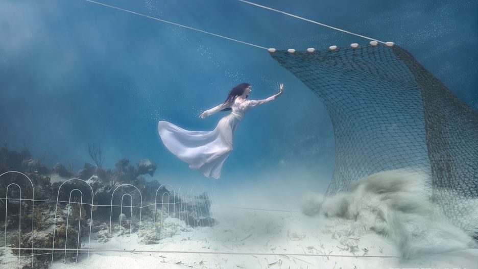 Stop trałowaniu! Takie przesłanie płynie z fantastycznym zdjęciem, stworzonym przez podwodną modelkę Christine Ren i fotografa Bretta Stanleya. Ogromne sieci ciągnięte przez potężne trawlery wyrządzają wiele szkód w środowisku morskim.