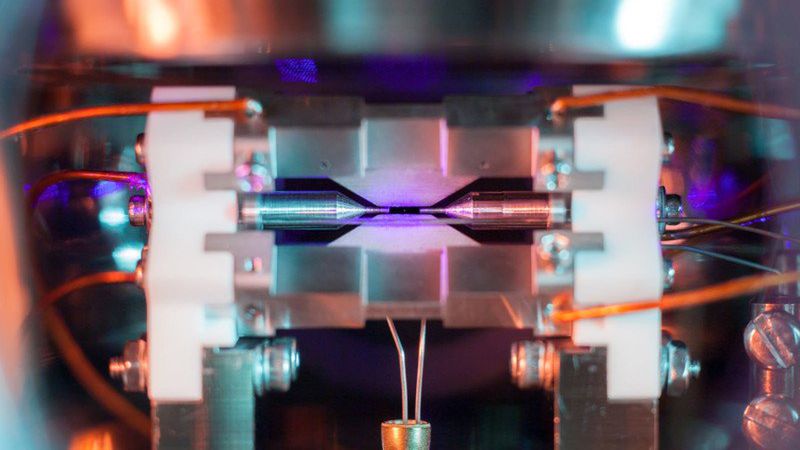Autorem tego wspaniałego obrazu jest David Nadlinger z Uniwersytetu Oksfordzkiego. Pojedynczy atom został tu uwięziony w polu elektrycznym, a odległość między elektrodami wynosiła zaledwie 2 milimetry.