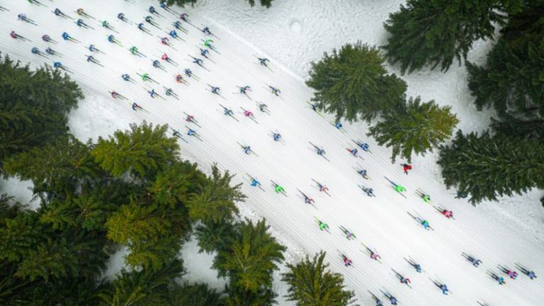 Zwycięskie zdjęcie zatytułowane “A Shoal of Colorful Fish“ (z ang. ławica kolorowych ryb), przedstawia wyścig narciarzy podczas Biegu Piastów w Jakuszycach. Jacek Deneka wykonał je dronem DJI Mavic 2 Pro. Na co dzień fotograf specjalizuje się w fotografii sportowej.
