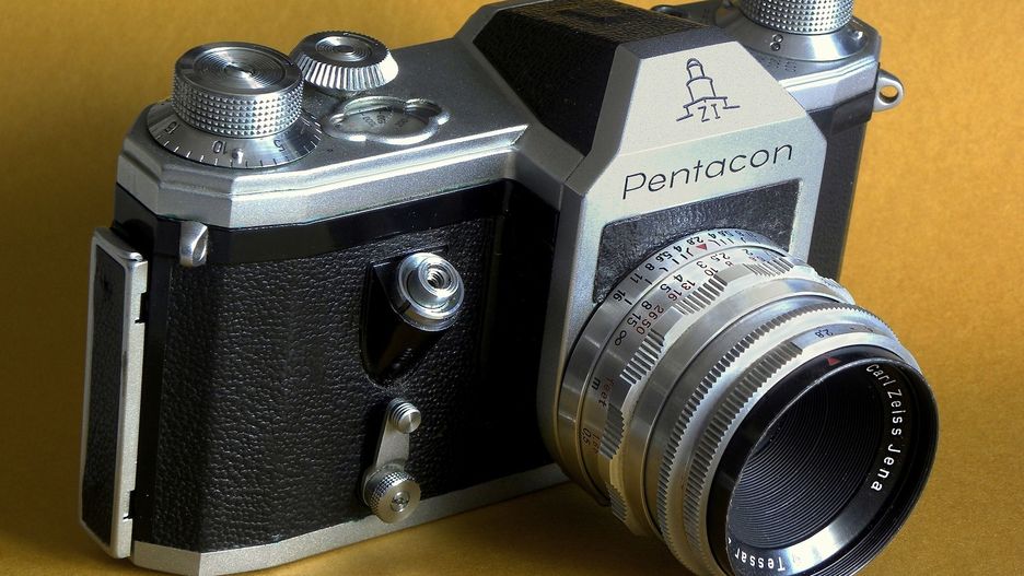 Aparatem, którego szukamy jest małoobrazokowa lustrzanka Pentacon z obiektywem Carl Zeiss Jena Biotar 58 mm f/2. Całość była zamknięta ”w pięknym brązowym, skórzanym futerale z tłoczeniem, jakich dzisiaj już nie produkują”, jak mówi Pan Eryk.