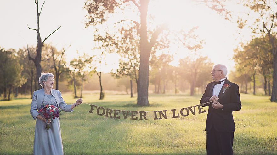 Ferris (90) i Margaret (89) Romaire poznali się w szkole średniej i wzięli ślub w 1946 roku. Niestety, wtedy nikt nie dysponował aparatem fotograficznym, więc ich wesele było uwiecznione tylko w ich pamięci. Po 70 latach od tamtego wydarzenia, ich wnuczka – Amanda Kleckley – zaplanowała sesję ślubną, w której postanowiła, że jej dziadkowie zostaną uwiecznieni pełni szczęścia, by zrekompensować im brak zdjęć, które powinny powstać już dawno.