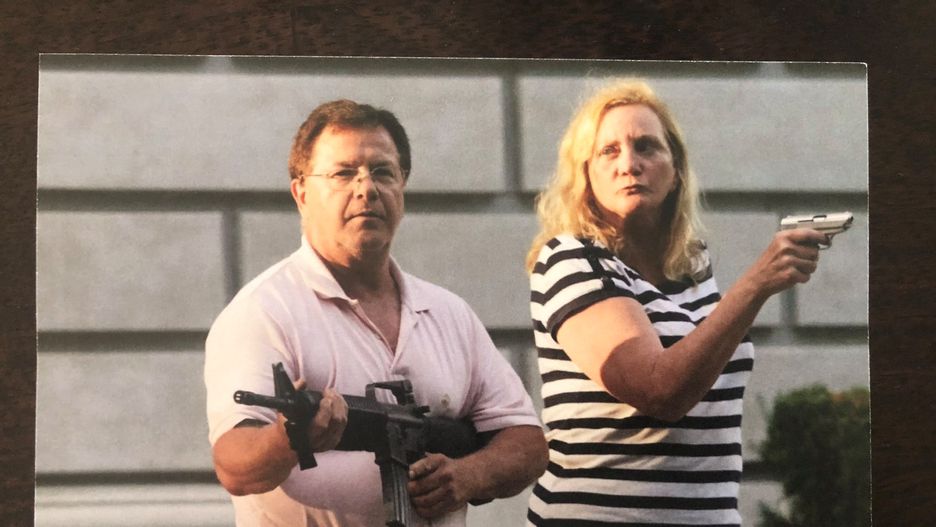Sprawa dotyczy Marka i Patricii McCloskey, którzy zostali oskarżeni o nieuzasadnione użycie broni i stwarzanie zagrożenia po tym, jak stali z bronią i celowali do około 500 protestujących, którzy przemierzali ich prywatną ulicę w Missouri. Protest dotyczył śmierci Afroamerykanina George’a Floyda. Niezbitym dowodem w tej sprawie jest zdjęcie autorstwa Williama Greenblatta (agencja UPI).