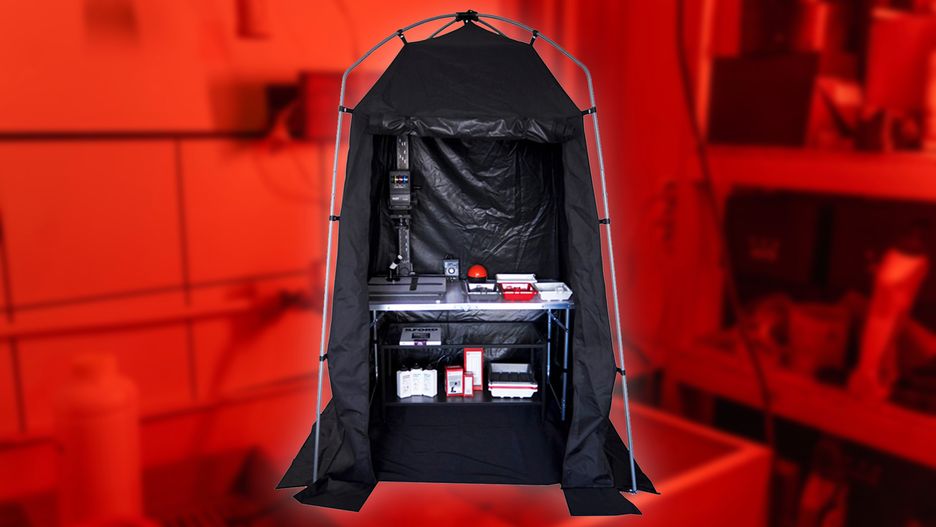 Namiot jest stawiany na bazie metalowego stelażu. Całość ma wysokość 2,2 metra, a podstawa ma 1,3x1,3 metra. Wykorzystany materiał jest światłoszczelny, a od wewnętrznej strony nie odbija promieni, zapewniając kompletne zaciemnienie obszaru roboczego.