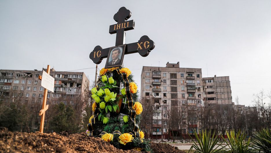 Aleksander Ermoczenko z agencji Reutera, który jest w Mariupolu, udokumentował przerażający widok. Na pasie zieleni między dwoma ulicami powstał niewielki cmentarz. Mieszkańcy chowają tam swoich bliskich. Tuż obok widać zniszczone budynki mieszkalne ze śladami po wybuchach pocisków.