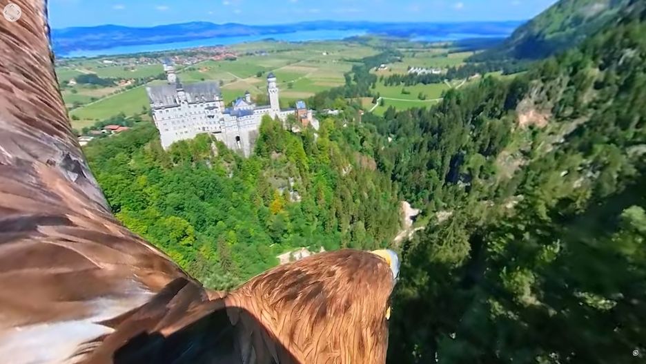 Orły od stuleci są wykorzystywane w polowaniach oraz innych zadaniach. Tym razem mamy do czynienia z ptakiem będącym latającym mocowaniem do kamerki 360 stopni. Dzięki temu możemy zobaczyć przepiękny zamek, który zainspirował Disneya do stworzenia znanej animacji.