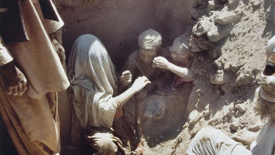 Pamiętne zdjęcie powstało po nalocie kilku radzieckich myśliwców na wioskę Koszk-e Serwan. Kiedy Sikorski dotarł na miejsce, wydobyto spod gruzów ponad 30 ciał, a nadal nie doliczono się przeszło 40 mieszkańców. Problemem był fakt, iż większość osób chowała się w piwnicach lub specjalnie drążonych tunelach. Gdy co najmniej ćwierć- lub półtonowa bomba eksplodowała nad ich głowami, znajdowali się na ogół w śmiertelnej pułapce. Tak reporter relacjonował te wydarzenia: