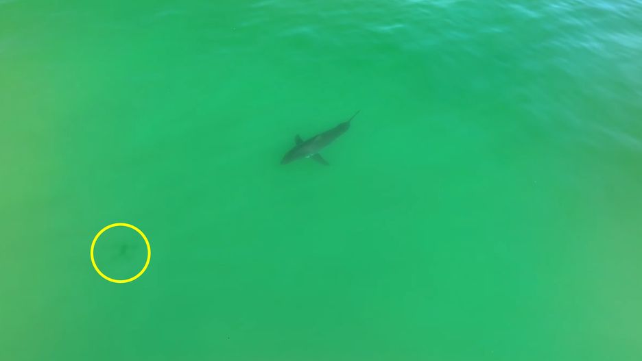 Rekin gonił cień drona. Zachowywał się, jak kot goniący zajączka