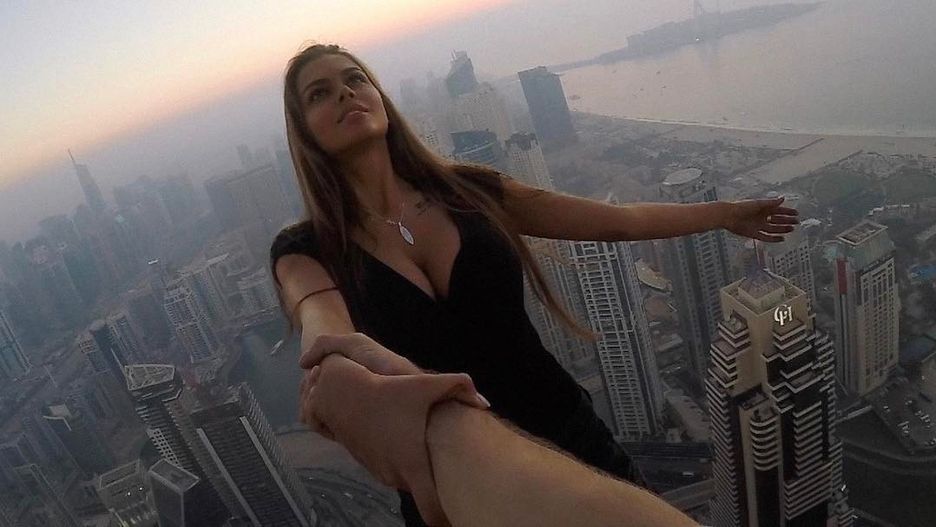 Na koncie Viktorii Odintsovej na Instagramie możemy zobaczyć 22-letnią modelkę, która trzyma za rękę swojego asystenta. Na jednym z nich dziewczyna „leci” do tyłu, na innym zwisa z ogromnej wysokości, trzymając się mężczyzny. Wszystko miało miejsce na terenie Cayan Tower, 73-piętrowym wieżowcu o wysokości 304 metrów.