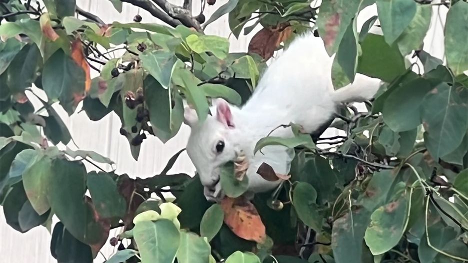 Gary Blick jest nie tylko lekarzem, ale również zapalonym fotografem. Na zewnątrz jego biura rośnie drzewo, na które chętnie wchodzą różne małe zwierzaki. Jednym z nich jest wiewióka-albinos. Ekspert mówi, że takie stworzenie rodzi się jedno na 100 tys. okazów.