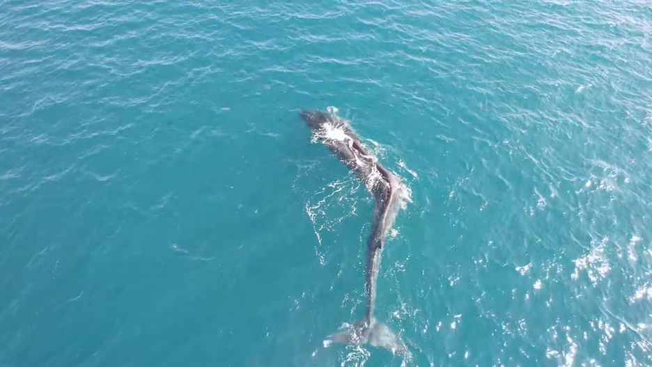 Na filmie z drona widać bardzo dziwnego walenia. Widać, że ma skrzywiony kręgosłup, lecz to schorzenie jest ekstremalnie rzadkie u tych zwierząt. Przez deformację wielki ssak radzi sobie dość kiepsko.