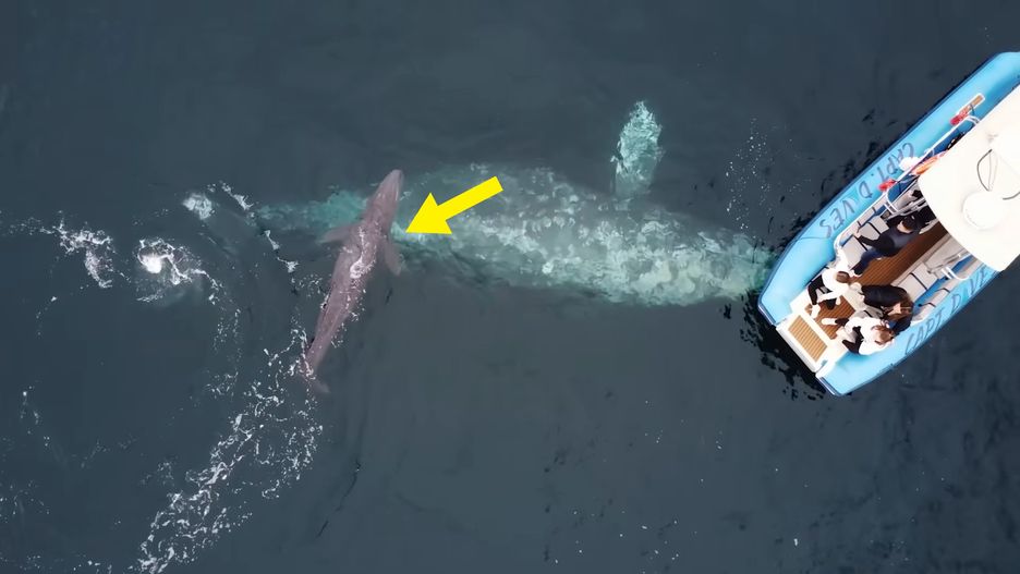 Nagranie z perspektywy lotu ptaka doskonale pokazuje całą sytuację. Zobaczycie tam też ujęcia nagrane przez członków załogi pobliskie łodzi. Taka sytuacja zdarza się niezwykle rzadko. Trzeba przyznać, że zobaczenie na własne oczy cudu narodzin tak wielkiego zwierzęcia to pamiątka na całe życie.