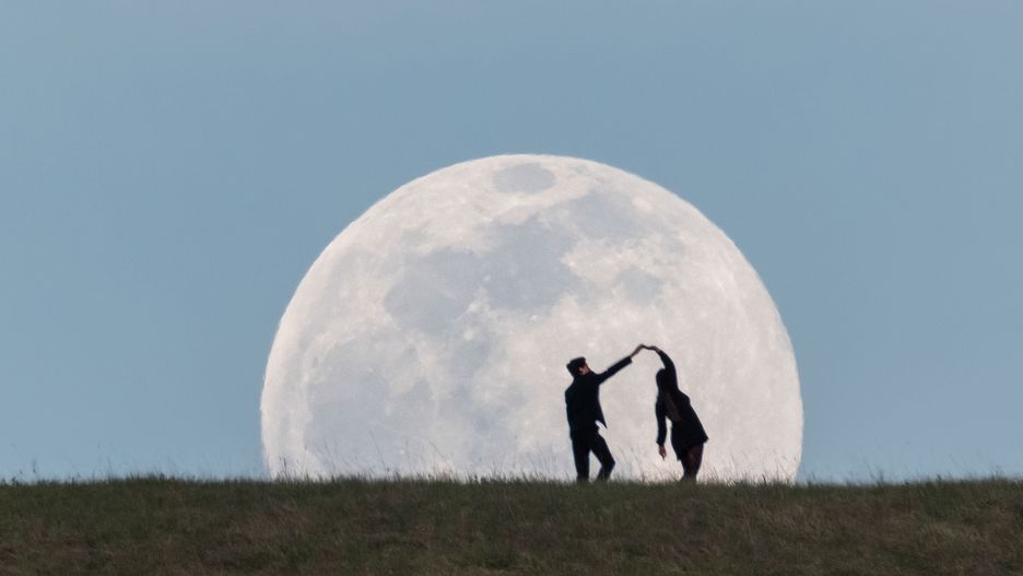 Scena jak z bajki. Para tańczyła na tle ogromnego Księżyca