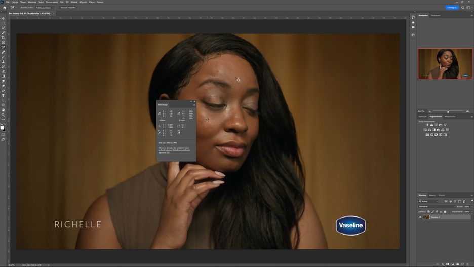 Każdy fotograf portretowy wie, jak ważny jest odpowiedni odcień skóry oraz jej stan. Na końcowym zdjęciu widać nie tylko retusze, ale również pracę wizażystów, którzy dbają o dobry wygląd. O ile przy kobietach o jasnej karnacji, kwestia kosmetyków to żaden problem, tak przy ciemniejszych już dość spory.