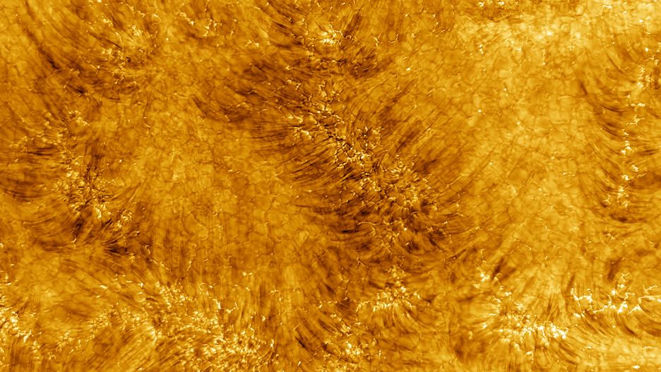 Z bliska, przy rozdzielczości zaledwie 18 kilometrów, środkowa warstwa atmosfery Słońca, znana jako chromosfera, wygląda niemal jak włochaty dywanik. Widoczne na zdjęciu jasne włókna ognistej plazmy, spływają do korony z czegoś w rodzaju porów przypominających plaster miodu. Te pękające plamy znane są jako granule, a każda z nich ma około 1600 kilometrów szerokości.