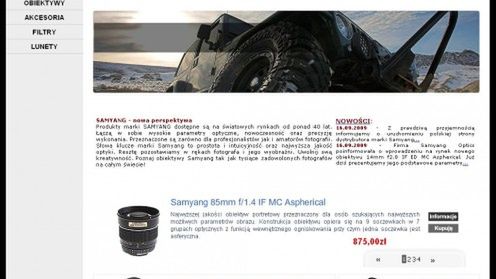 Samyang to koreański producent optyki - taniej optyki. Wśród obiektywów jakie mają oni w ofercie jest kilka, na prawdę ciekawych konstrukcji. Dlatego strzałem w dziesiątkę jest uruchomienie polskiej strony samyang.pl.