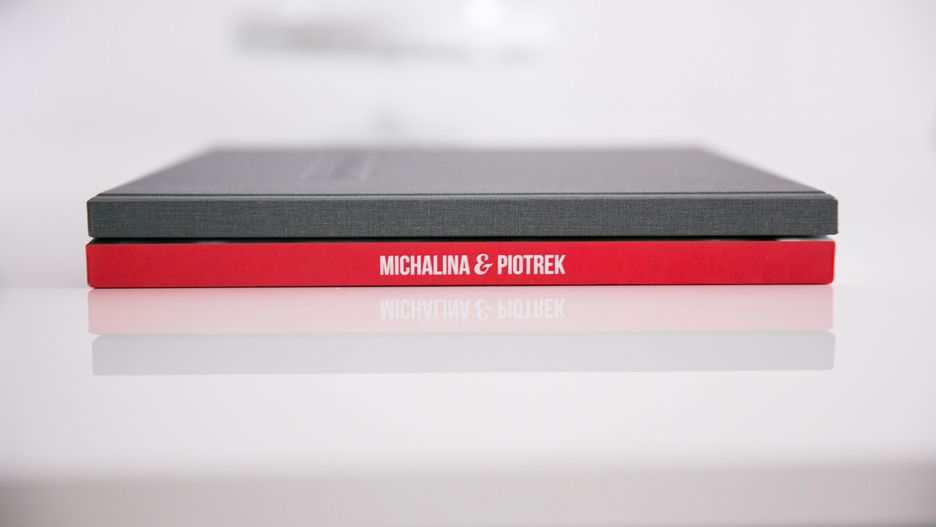 Do recenzji otrzymałem aż 5 gotowych fotoksiążek, ale skupiłem się na dwóch, zawierających zdjęcia ślubne. Obydwie w formacie 33 x 28. Pierwsza z nich ma fotograficzną okładkę i jest to książka typu flatbook, czyli rozkładająca się na płasko. Zdjęcia są wydrukowane na papierze niepowlekanym. Druga została opatrzona ciemnoszarym płótnem powlekanym z tłoczeniem, a zdjęcia wydrukowano na papierze powlekanym, błyszczącym. Dodatkowo jedną z książek dostarczono w płóciennym pudełku.